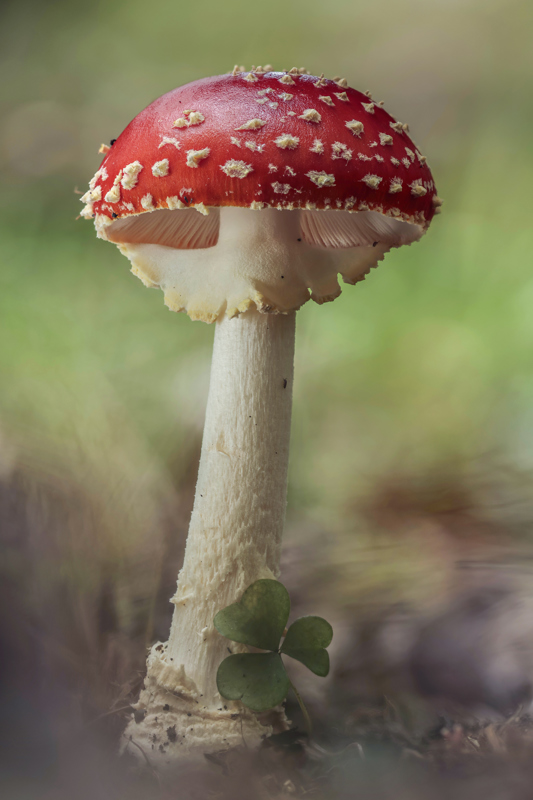 Fly agaric by clover leaf